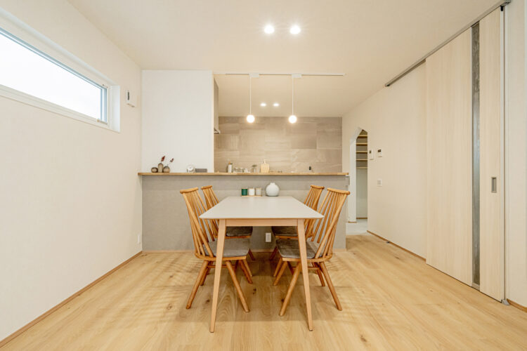 ・18帖はくすみ感のあるナチュラルカラーの床材を使用
