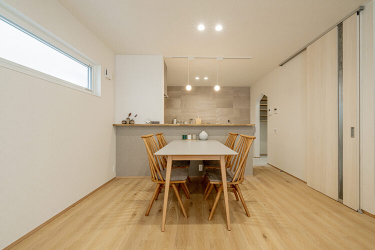 ・18帖はくすみ感のあるナチュラルカラーの床材を使用